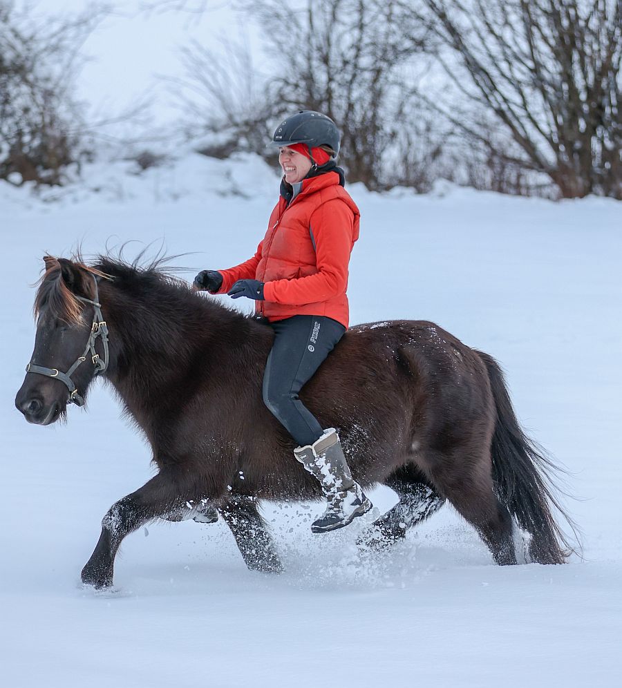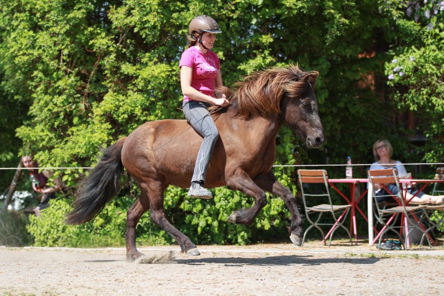Trotz aller Dressur, durchdachter geraderichtender Arbeit und dem Training vom Boden ist es mir wichtig (Island)pferde immer ausreichend viel vorwärts zu reiten. Egal ob junges Pferd, voll im Training oder inzwischen fast 36 Jahre alt, wie Dúfa (auf den Fotos mein Handpferd).
