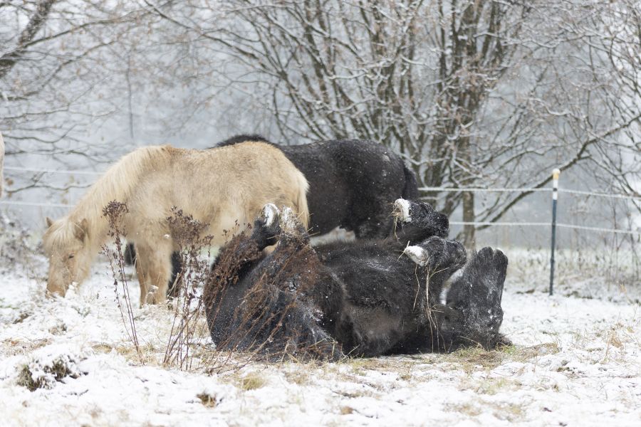Für mich hat es sich bewährt, von Mai bis Oktober die Weiden nachzustecken und von November bis April die Pferde nur noch stundenweise drauf zu lassen. Das alles setzt natürlich voraus, dass man genug Land hat und ich bin tatsächlich ziemlich entspannt bezüglich Trittschäden.