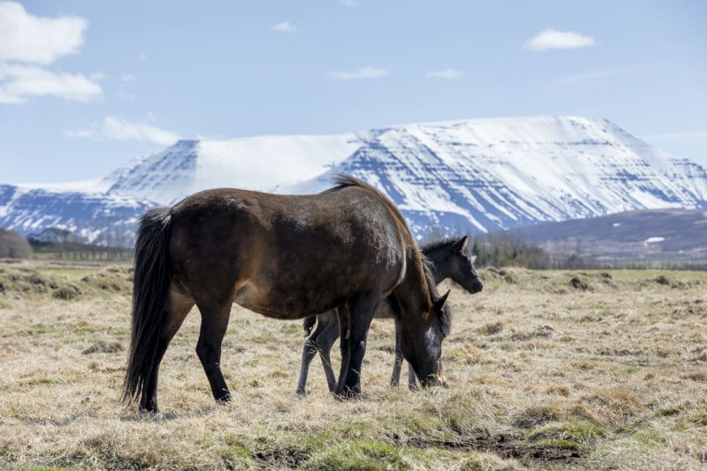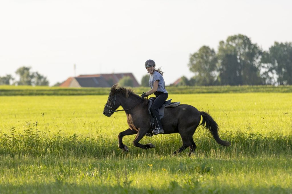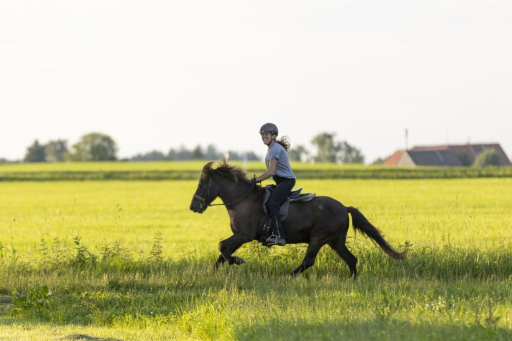 Für mich ist das Reiten mit Handpferd einer der natürlichsten und schönsten Arten Pferde zu trainieren und auch wenn Dúfa, die Rappstute auf den Fotos, aktuell wohl etwas zu schwer ist … Mit 38 Jahren ist das gut zu ertragen, da sie ansonsten (zum Glück!) noch sehr fit ist.